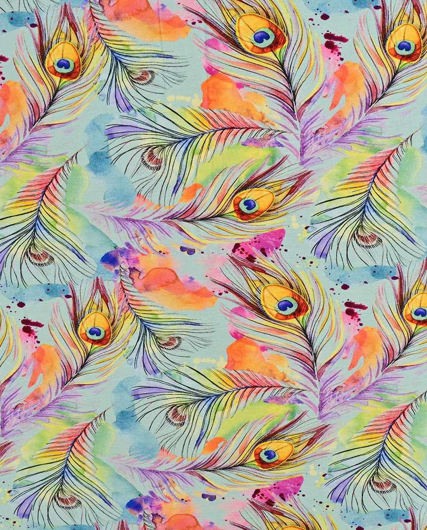 Bamboo Jersey Digital Peacock Feathers 5956